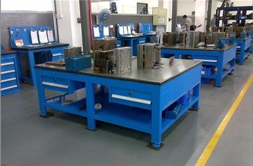 鉗工工作臺(tái)用安裝臺(tái)虎鉗,放置工具和工件等,其高度約為800到900毫米,以方便工作。正面的掛圖架可放置裝配圖及零件圖。桌內(nèi)可定制擺放常用工具。配有照明燈具。